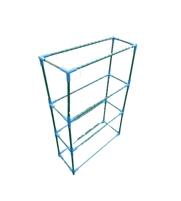 Estrutura metálica em tubo de 19mm, com junções em peças plásticas resistente.